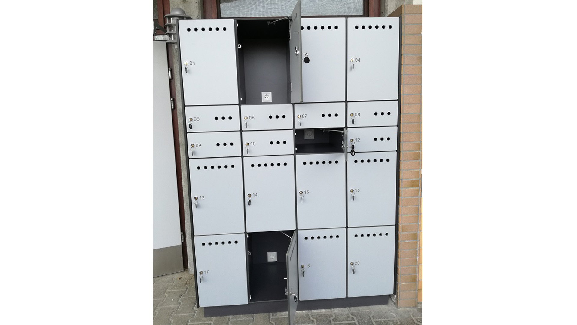 Wir die Firma Spindmax durften für den Bürger- und Verkehrsverein Tübingen e.V. mit unserem E-Spind für Handy, Laptop und Taschen den Neckarcamping Tübingen ausstatten. Der Ladeschrank wird aus HPL Material komplett gefertig und ist somit auch bestens für den Außenbereich geeignet. Jedes der einzelnen Fächer verfügt über eine Steckdose, wo der Kunde seine elektronischen Geräte aufladen kann. Da der Schrank aus HPL Material auftragsbezogen hergestellt wird ist es kein Problem hier auf die Wünsche des Kunden einzugehen. Verschieden Fachgrößen je Abteil ist hier möglich. Auf Maß können die Fächer oder der gesamte Schrank gefertigt werden.